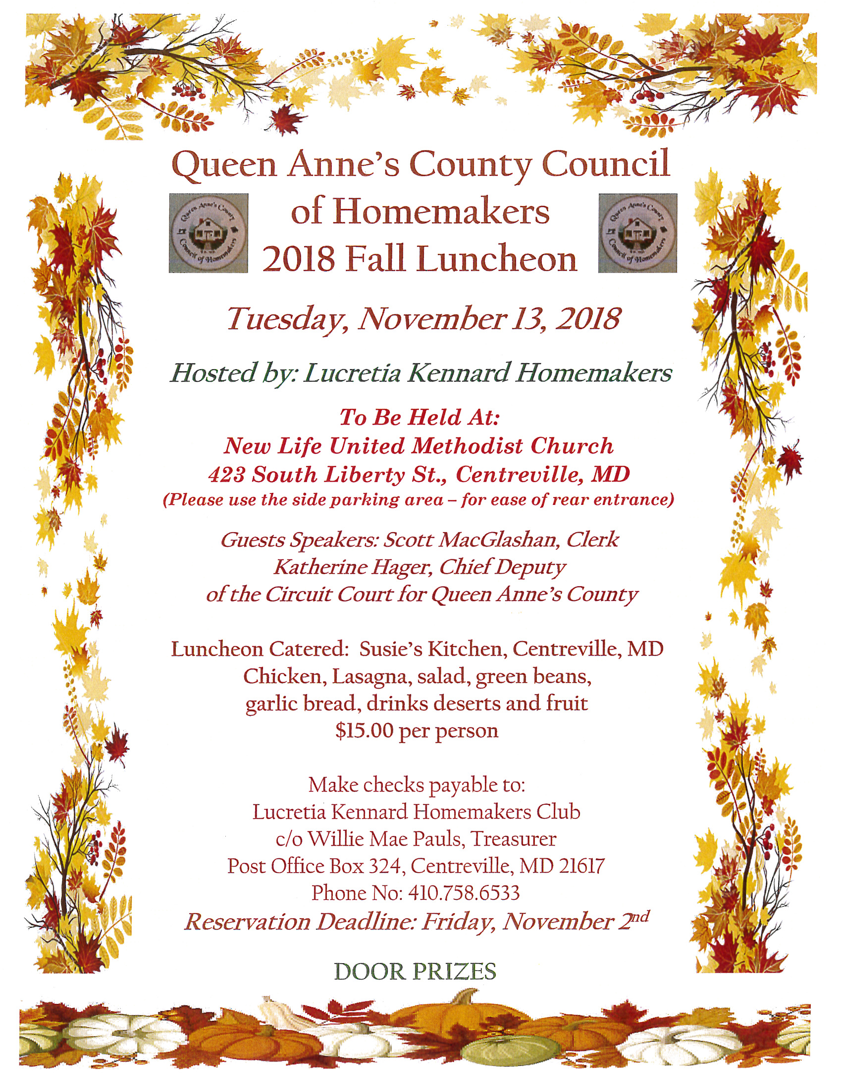 Queen Anne’s County Council of Homemakers 2018 Fall Luncheon