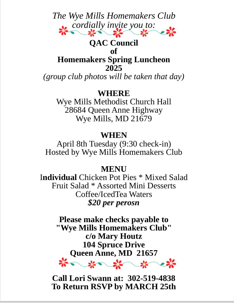 Please don’t forget baby quilts for the Family Center. Each group is to bring two.